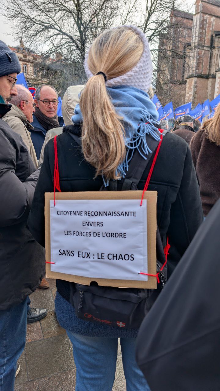 C'est sous un ciel chargé de pluie qu'une délégation de Reconquête Ariège était présente place Saint-Pierre à Toulouse au soutien de nos policiers. Une "Marseillaise" viendra clôturer la manifestation, en présence de 500 à 800 personnes.